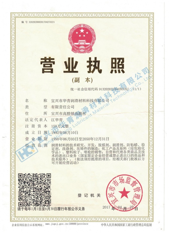 于1992年創立于宜興,2007年公司更名為宜興市華青潤滑材料科技有限公司,是一家集研發、生產、銷售于一體的專業性金屬加工耗材企業。專業生產被覆劑,壓鑄脫模劑,壓鑄脫模劑廠家,鍛造脫模劑,金屬切削液,鋁合金切削液等壓鑄耗材、金屬加工耗材,產品廣泛應用于加工中心、壓鑄、鍛造等領域。